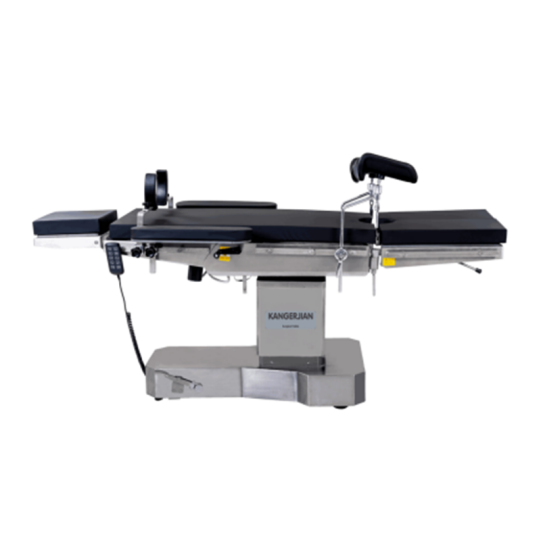 以電動液壓為動力,通過手柄按鍵控制手術(shù)床進行各種位置的變換,如升降、左右傾、前后傾、腰背部升降、移動固定等功能,使之達到手術(shù)操作的要求。